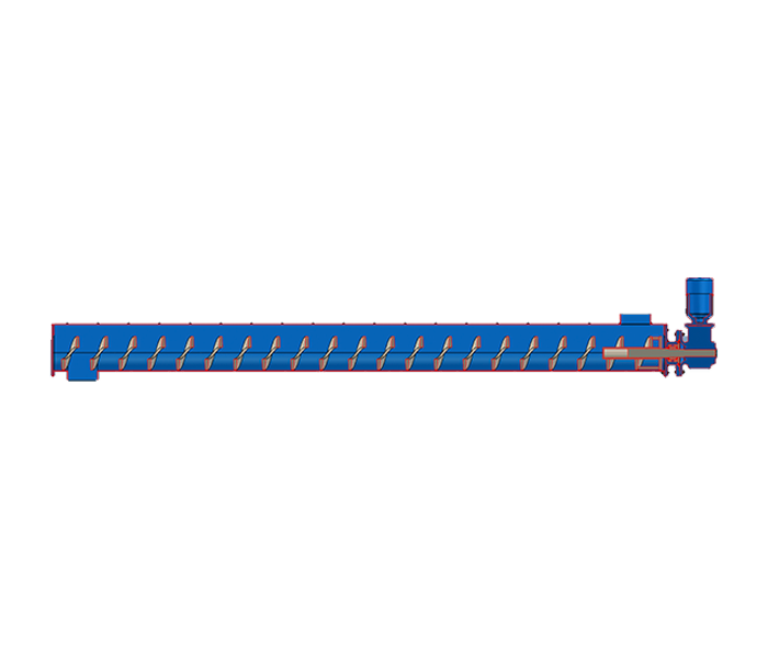 無軸螺旋輸送機的螺旋葉片采用不銹鋼材料通過專用模具的澆鑄而成,因而具有足夠的強度和剛度并且葉片表面光潔、又具有合適的旋轉(zhuǎn)速度,有效保證在輸送柵渣的過程中不會發(fā)生污物纏繞、阻塞現(xiàn)象,同時在輸送量較大的情況下螺旋葉片也不會變形。U型螺旋輸送槽內(nèi)耐磨襯里設置成半圓狀,其圓弧設置成與無軸螺旋體半徑相吻合以減少過量間隙來提高輸送效果;耐磨襯里采用耐磨性能高的尼龍材料制作,便于安裝及更換,使用壽命長。U型螺旋槽采用不銹鋼板卷制而成,除進料口敞開外,其余部份沿螺旋槽加平蓋封閉,整個傳輸過程在一個密封的槽中進行,降低噪聲,減少了異味的排出;在U型槽的底部設有排放口,并配套排水球閥。